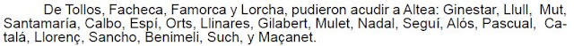 «Y, de hoy en adelante, en conformidad con dicho capítulo, nombrarlos. Y que para hacer la elección, dichos pobladores, concejo y vasallos de Balones y Beniaysó, sean elegidos; a saber: que sean nombrados dos para justicia, y de los dos, dicho señor elegirá uno, aquél que le parezca, y cuatro para jurados, de los cuales dicho señor mombrará los dos. Así se haya de observar y guardar en otros cualquiera oficiales que vengan a nombrar en todos los dichos lugares, en todos los años venideros, a perpetuidad».