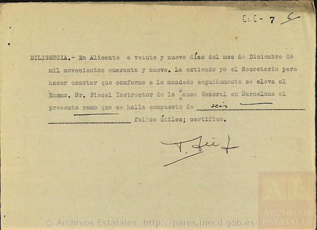 Natural de Famorca, vecino de Elche. Agricultor, de 24 años. Ingresó en el Reformatorio de Alicante el 14-III-1945, a disposición del Gobernador Civil, incomunicado, el 6-V pasó a la jurisdicción militar, que se inhibió el 23-V, salió en libertad el 15-VI-1945. Varias salidas a diligencias (Fuente: AHPA. Legajo 9069).