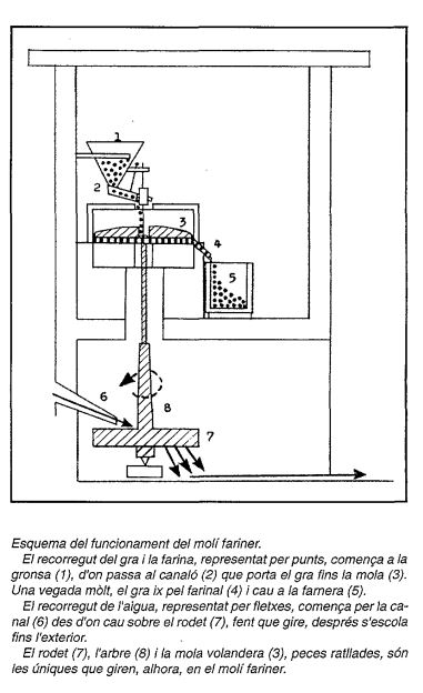 Este pinyol todavía se deshacía con las manos, y se le añadía agua caliente y se volvía a prensar en otra prensa mayor. Con unos embudos de hierro se separaba el aceite de la mezcla líquida que salía. Después de esta última prensada, quedaban como unas planchas circulares a las que se les llamaba “gleba de pinyol”, y se usaban para comida de animales o para avivar el fuego en la chimenea.