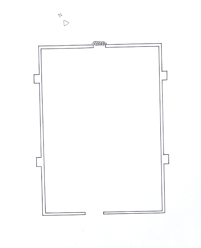 Está construída con piedras de formas regulares. La planta es rectangular. La cubierta era a dos aguas.