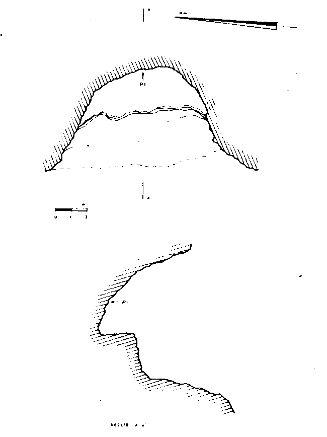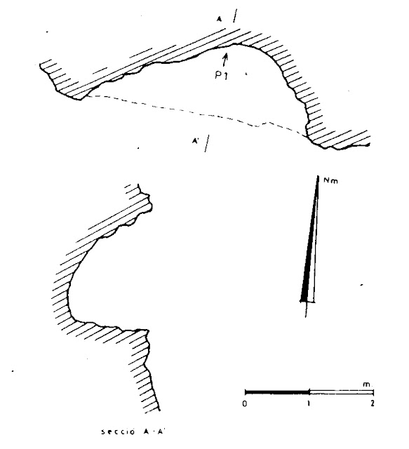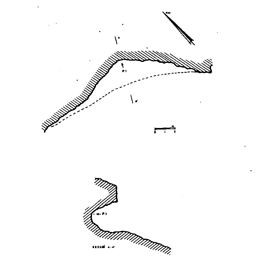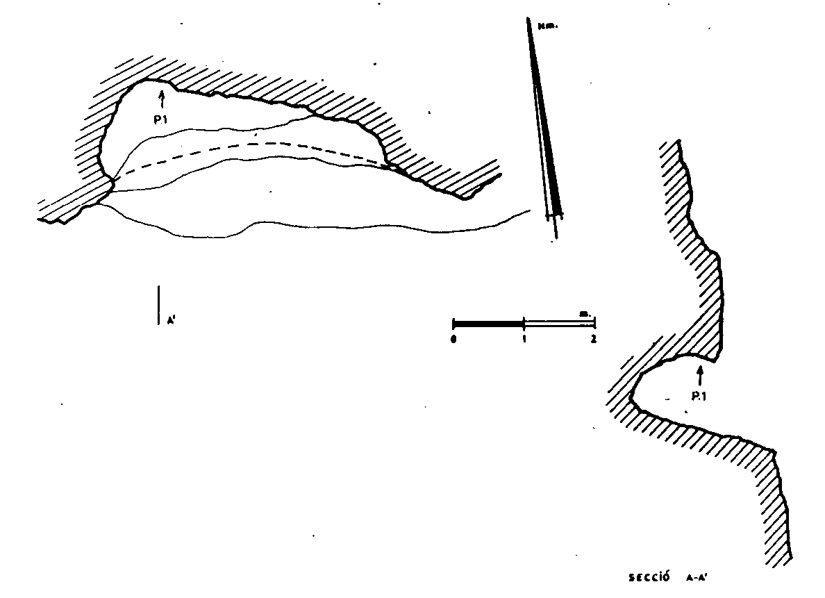 En la margen derecha y a unos 50 m. sobre el cauce del barranco, abrigo de 12m. de boca y 6’5 m. de profundidad máxima, en cuyo accidentado suelo se levanta un escalón de 3 m. de alto.
