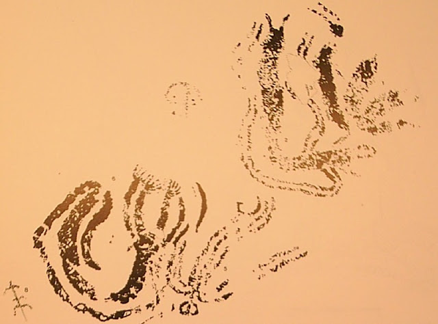 Graffitis de difícil datación. Son aspas cruzadas y líneas que salen desde sus vértices y se entrecruzan.