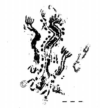 Graffiti con una figura cruciforme de más de 2 m. de larga. De difícil datación.