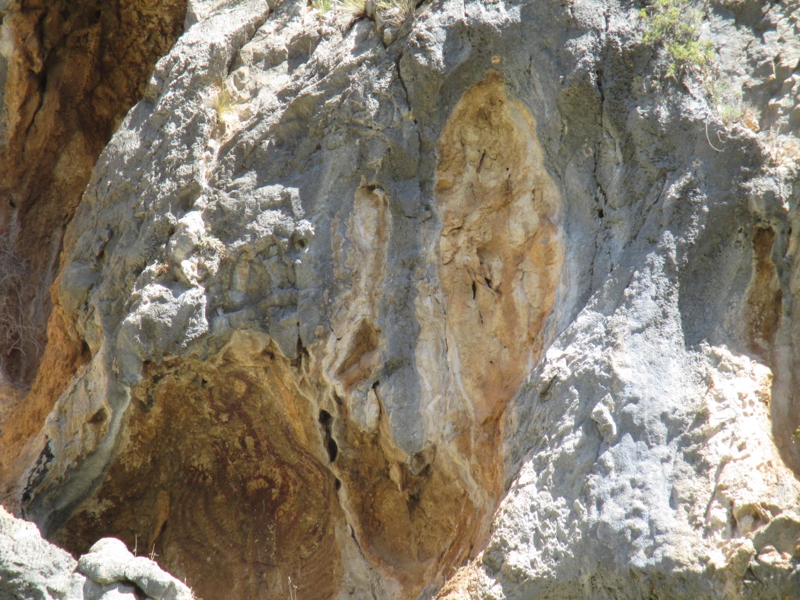 En el camí del Molí, muy cerca de la carretera a Tollos, en la pared de la falla, aparecieron motivos epigráficos de difícil datación.