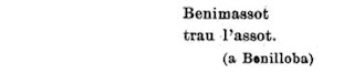 “Benimassot trau l’assot”. (Recogido por Sanchis Guarner, Manuel – «Locutions tòpiques valencianes”)