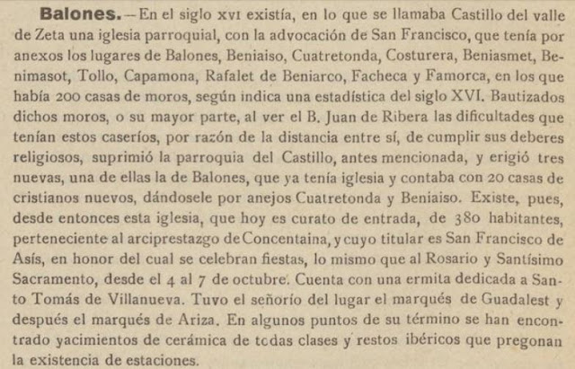 – Orozco, hace referencia al rápido crecimiento de la población de Quatretondeta: «Este pueblo, que a principios de siglo pasado (17009 era una aldea sin importancia alguna fue aumentando su población hasta erigirse en municipio independiente»